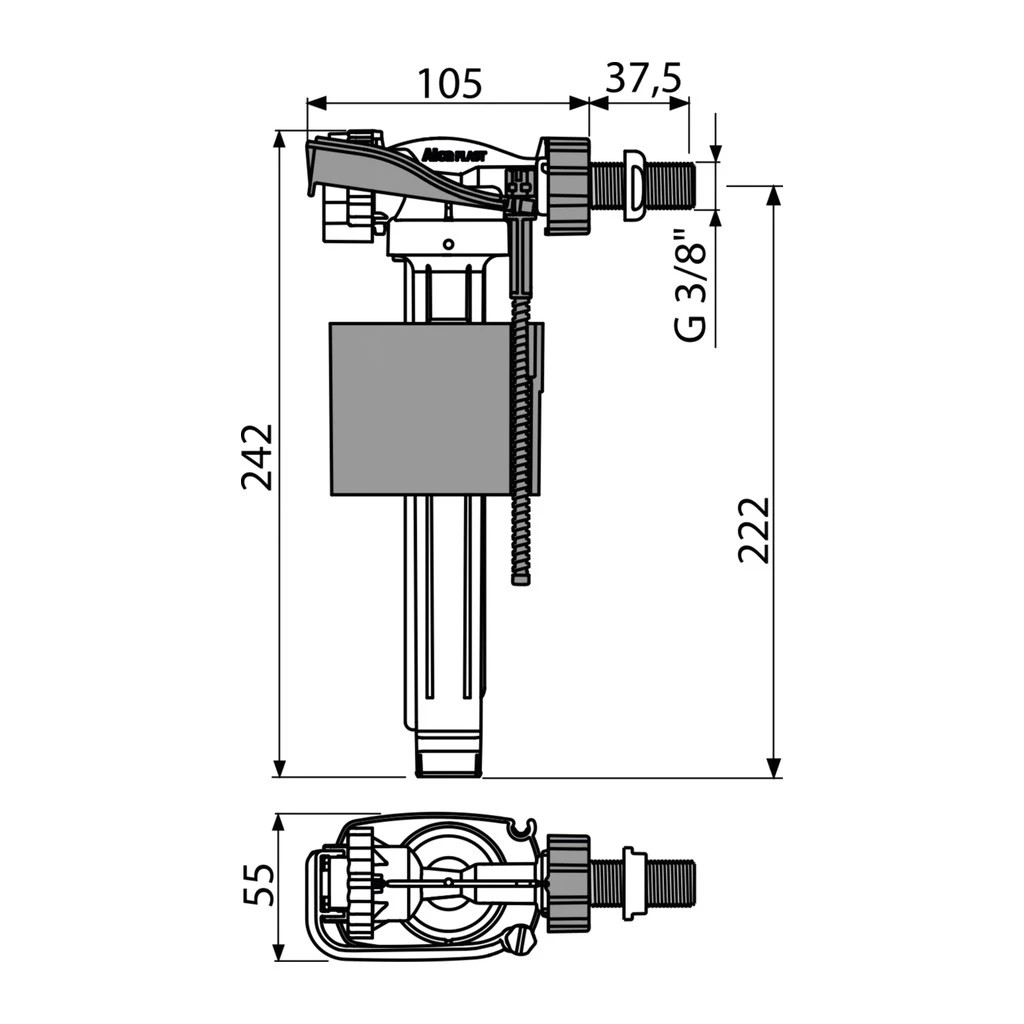 Napúšťací ventil Popis: Malá citlivosť na rozdiel tlaku vo vodovodnom poriadku, Materiál: POM, Nastaviteľná výška vodnej hladiny, Kovový závit dĺžka 38 mm, Plynulé uzavretie bez rázov, Zabudované sitko pre zachytenie nečistôt, Pre inštaláciu na strane nádržky, Pre výmenu alebo náhradu, Univerzálny ventil pre keramické splachovacie nádržky