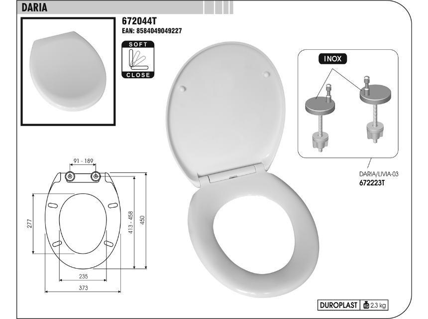 WC sedadlo DARIA duroplastové hrubostenné, antibakteriálne, nerezové závesy, SOFT CLOSE, biele